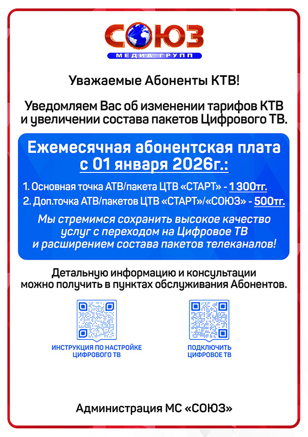 Также, доступна оплата за услугу КТВ помощью сервиса KASPI.KZ