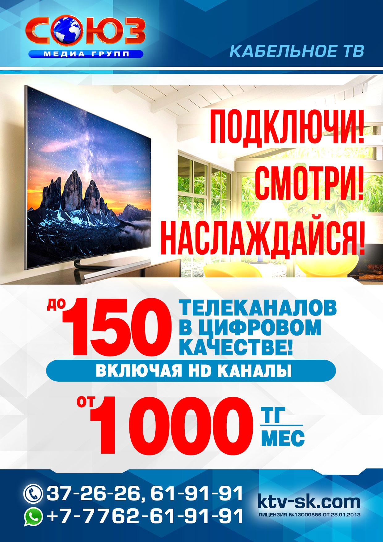 С 01.11.2023г. тарифный план “СОЮЗ 15” (15 мбит/с; 2 400 тг/мес)